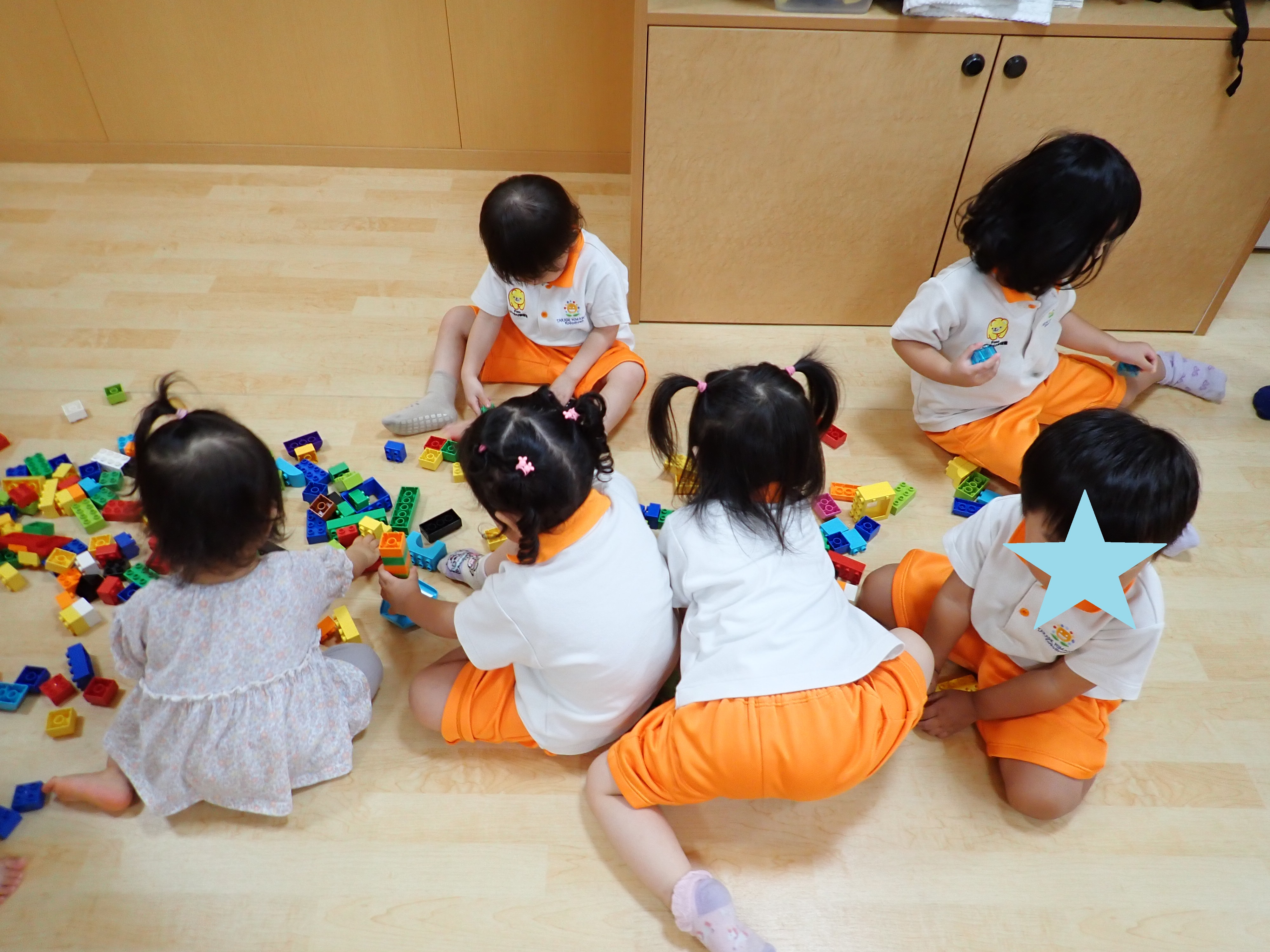 今日は1歳児緑組さんがレゴブロックを楽しんでいましたよ♪