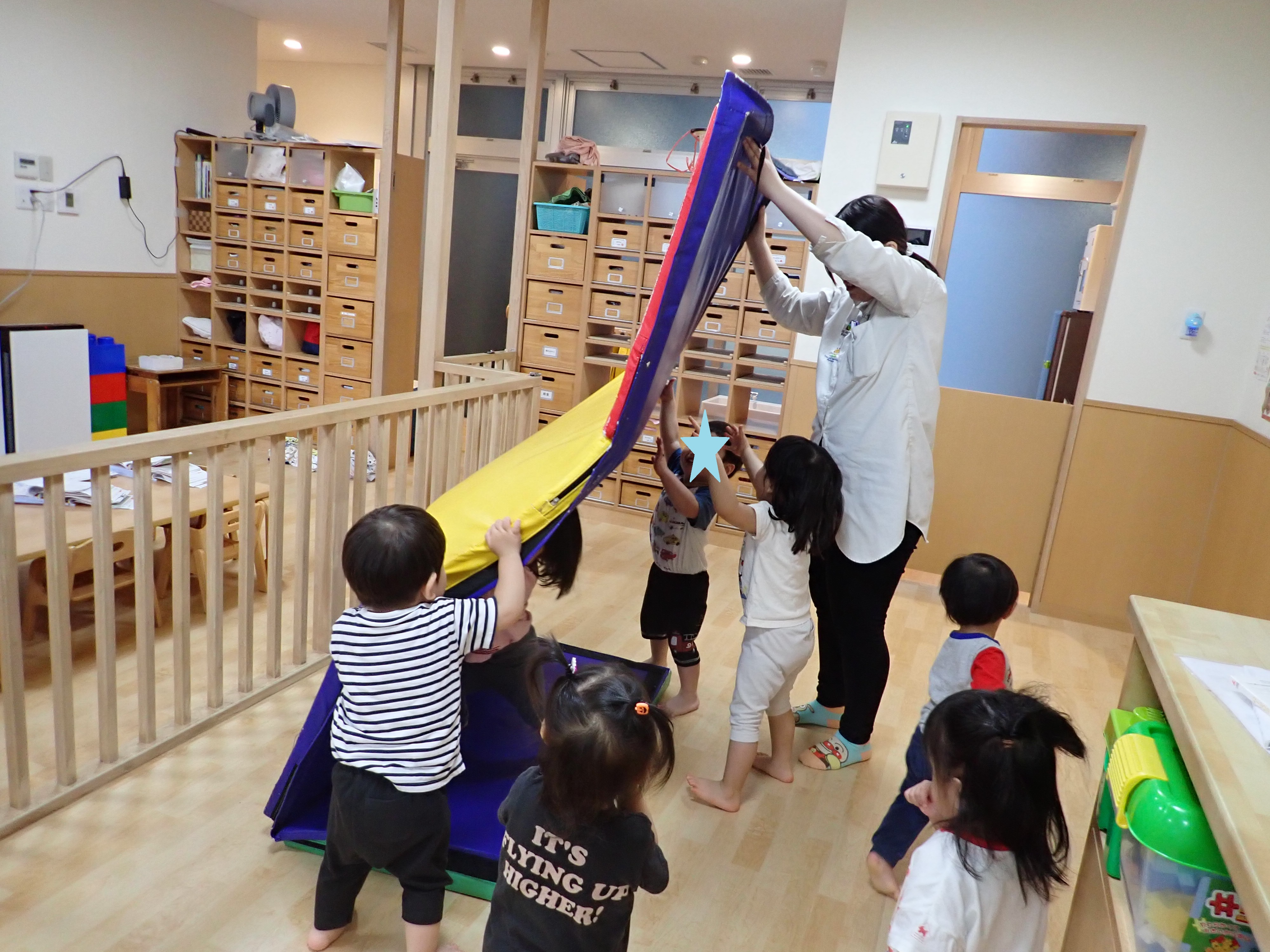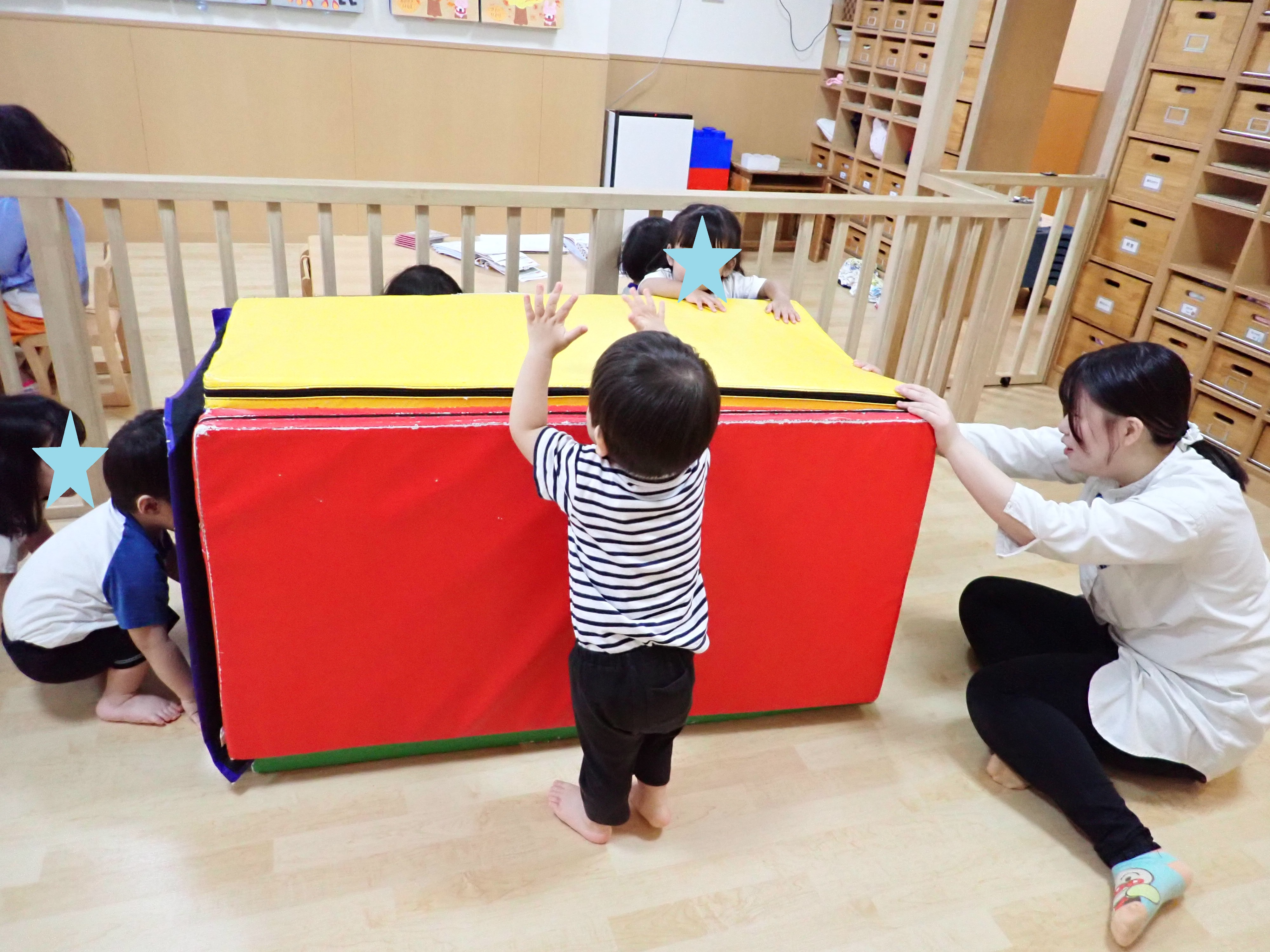 今日は1歳児緑組さんがマット遊びを楽しんでいましたよ☆