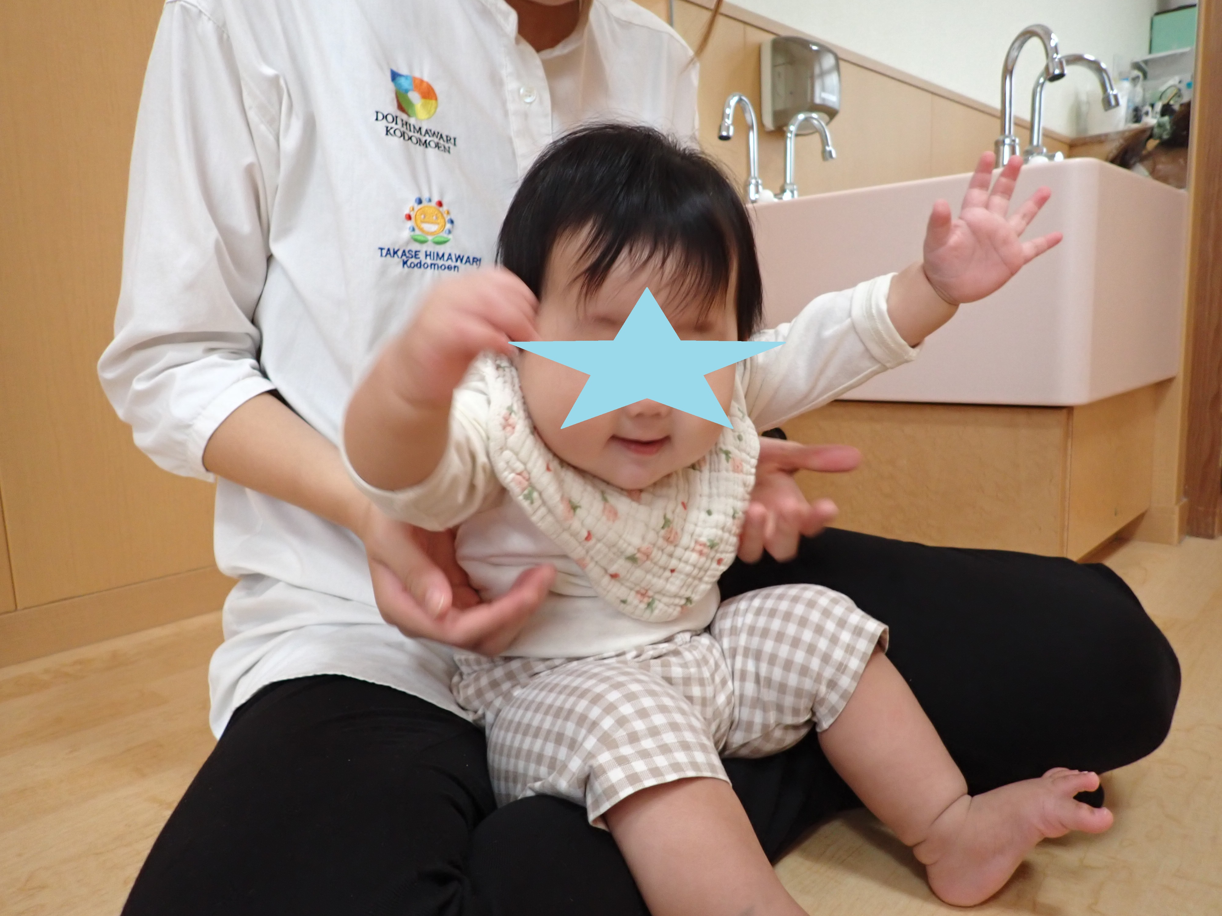 0歳児白組さんはハイハイやよちよち歩きで先生にギュー!