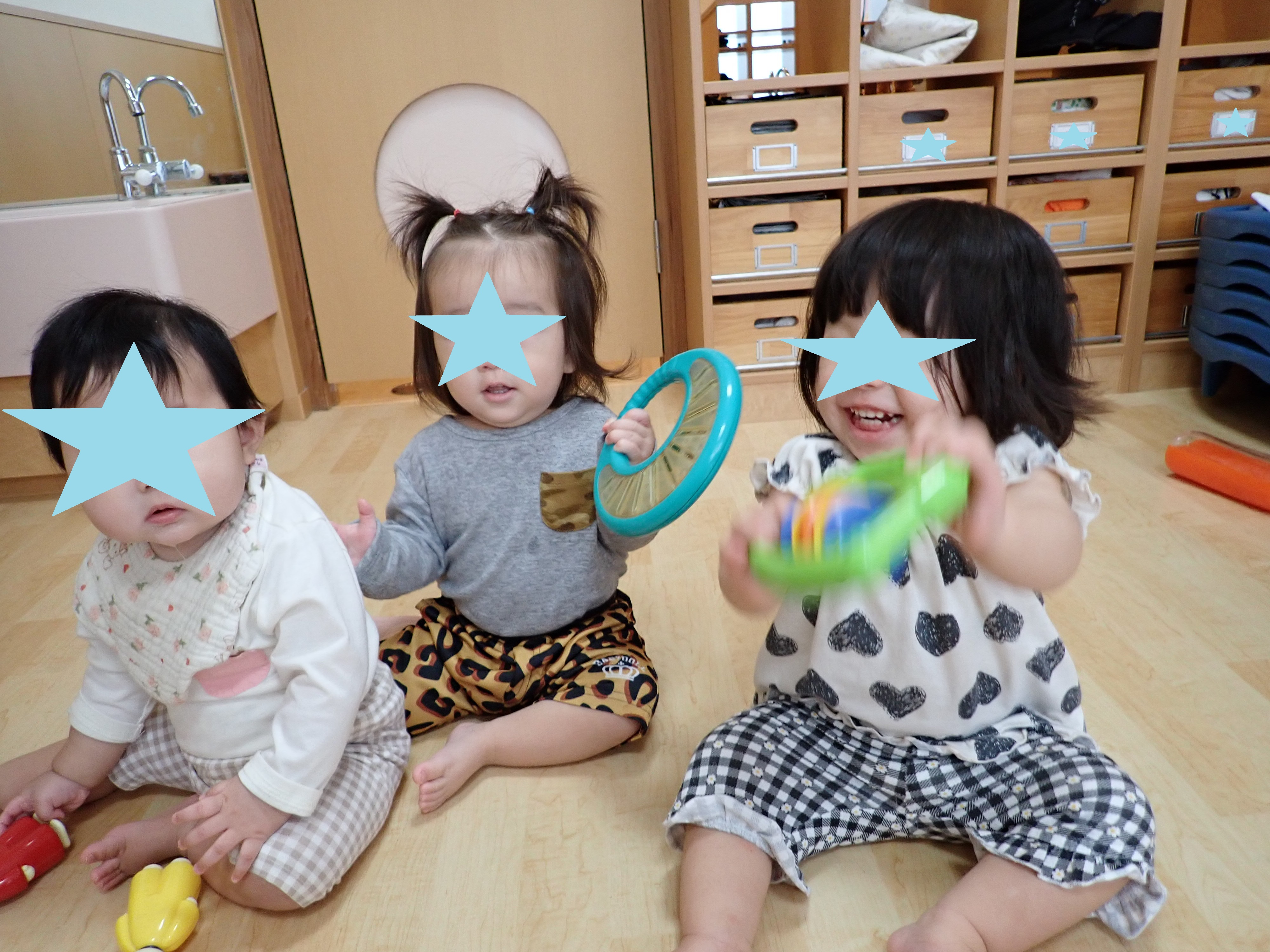 今日は0歳児白組さんがリズム遊びとカラフル玩具で遊んでいましたよ☆