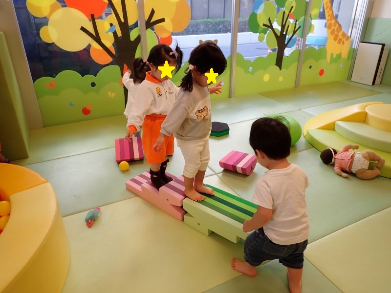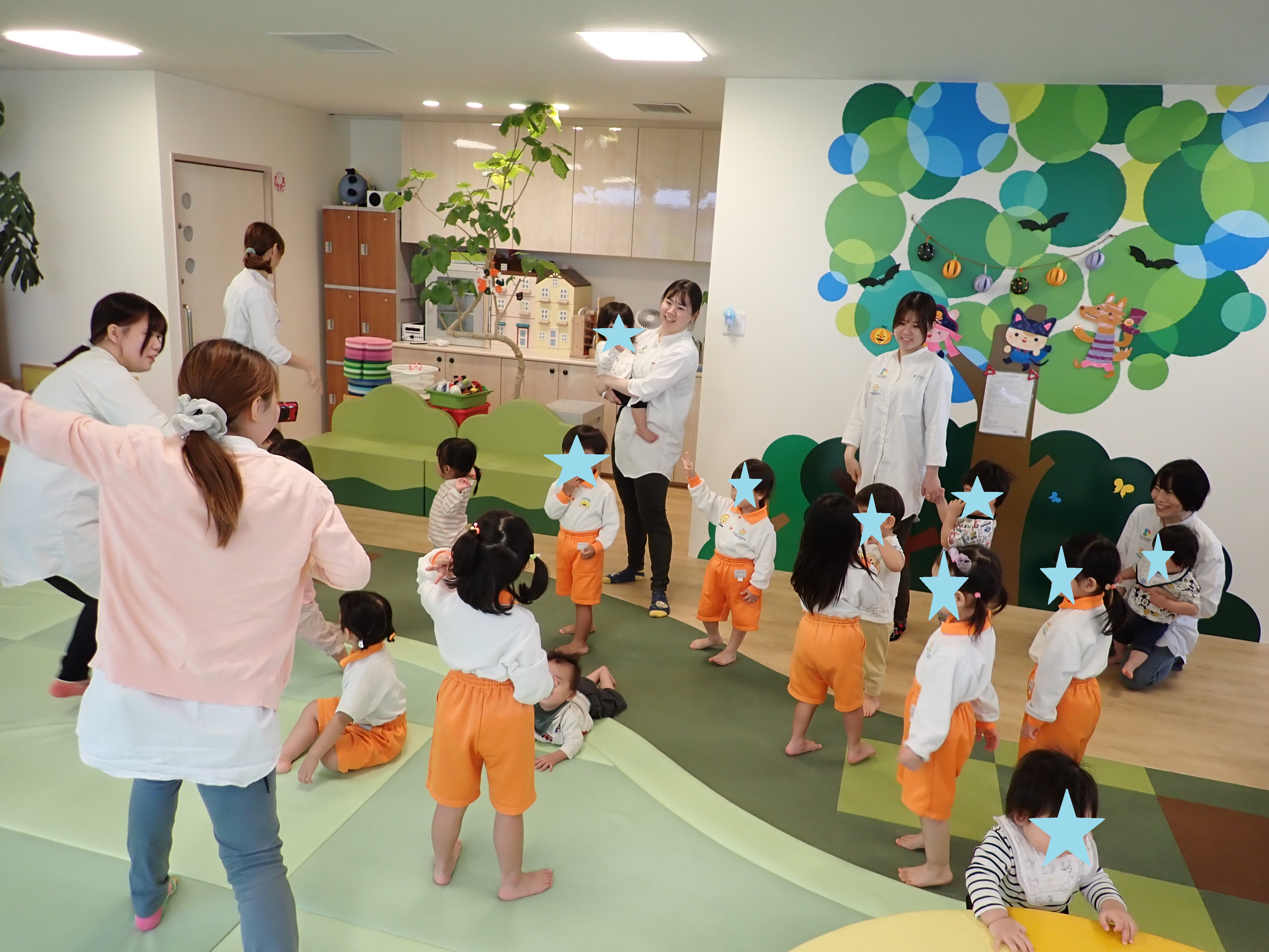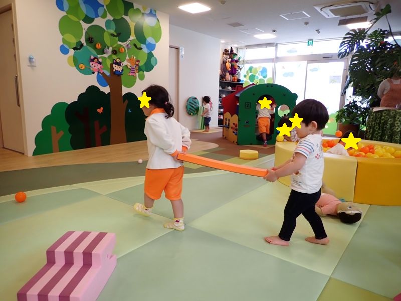 こんにちは!大阪府守口市にある小規模保育園Fineひまわり保育園です。今日は1.2歳児合同で遊びました♪