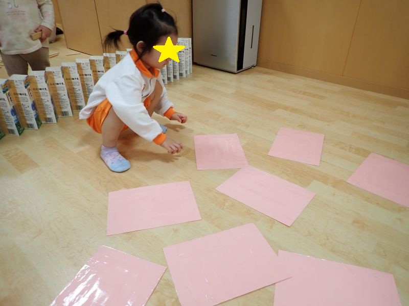 同じくだものをめくると「やった~」と喜ぶ姿も見られました。少しずつ、ルールも理解して楽しそうだったので次回は果物の種類を増やして遊んでみたいと思います。