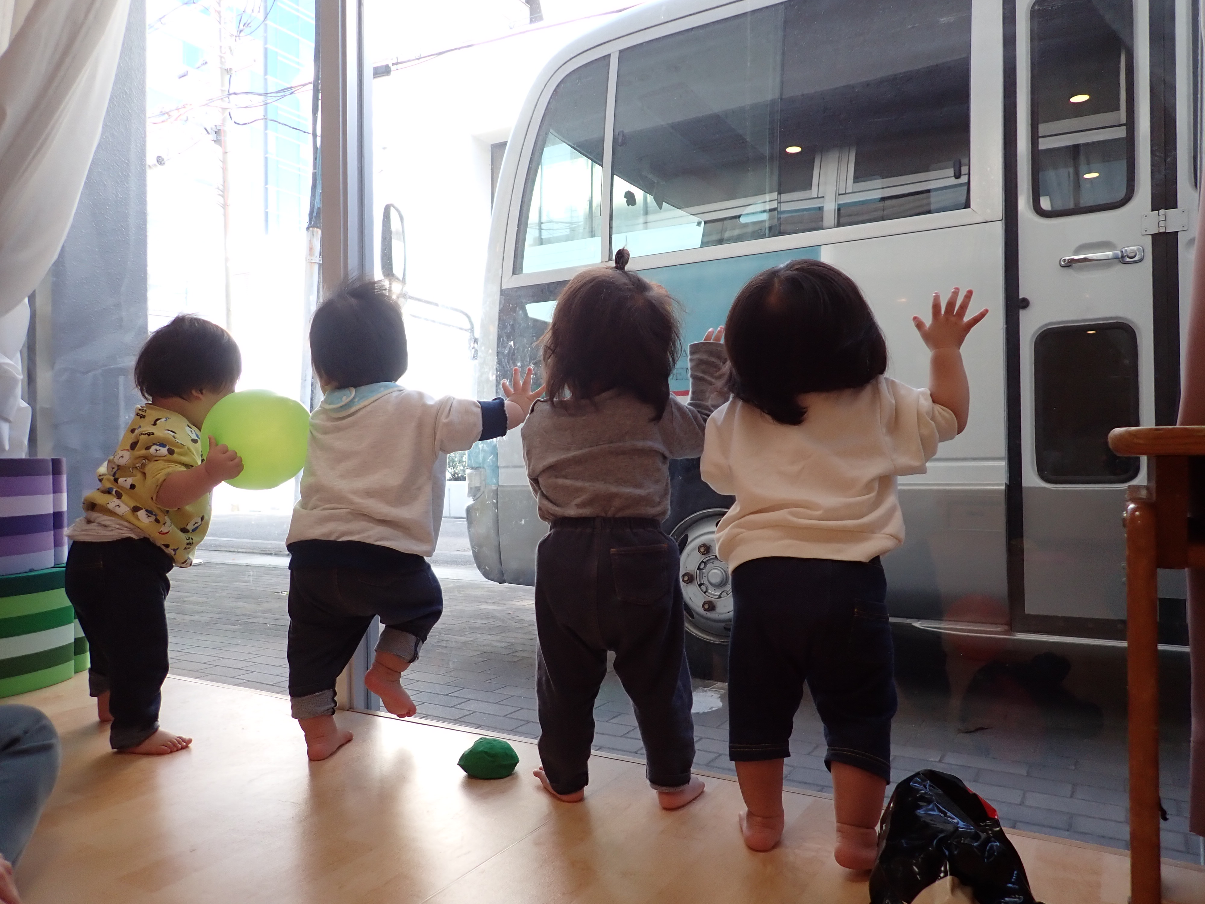窓から見えるバスをみんなで眺めている後ろ姿が可愛すぎました♪