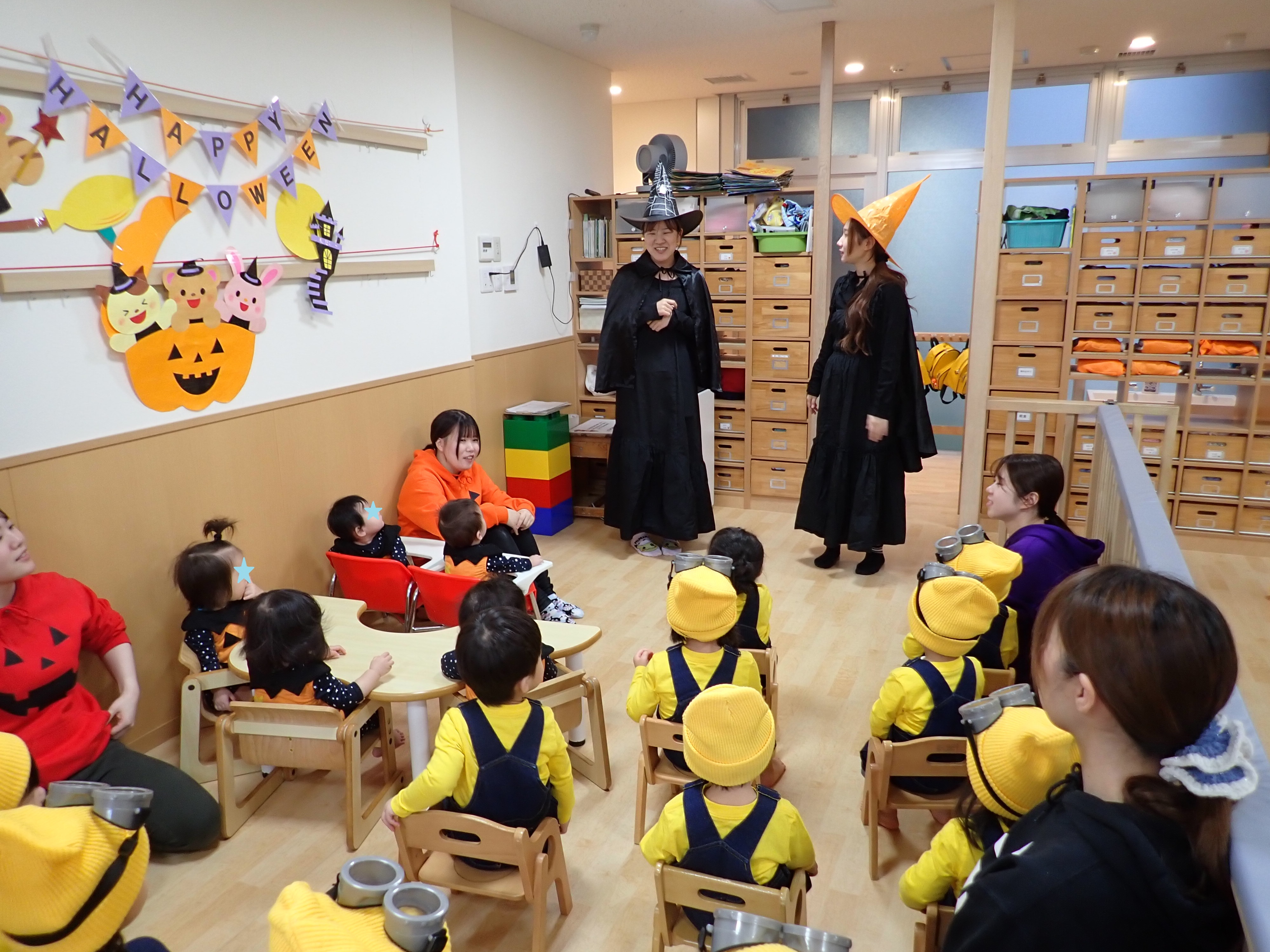今年のハロウィンパーティーでは魔女に変身した先生から「ハロウィンクイズ」を聞いたり、サーキット遊びをしたり、フォトブースで写真を撮ったりと盛り沢山!