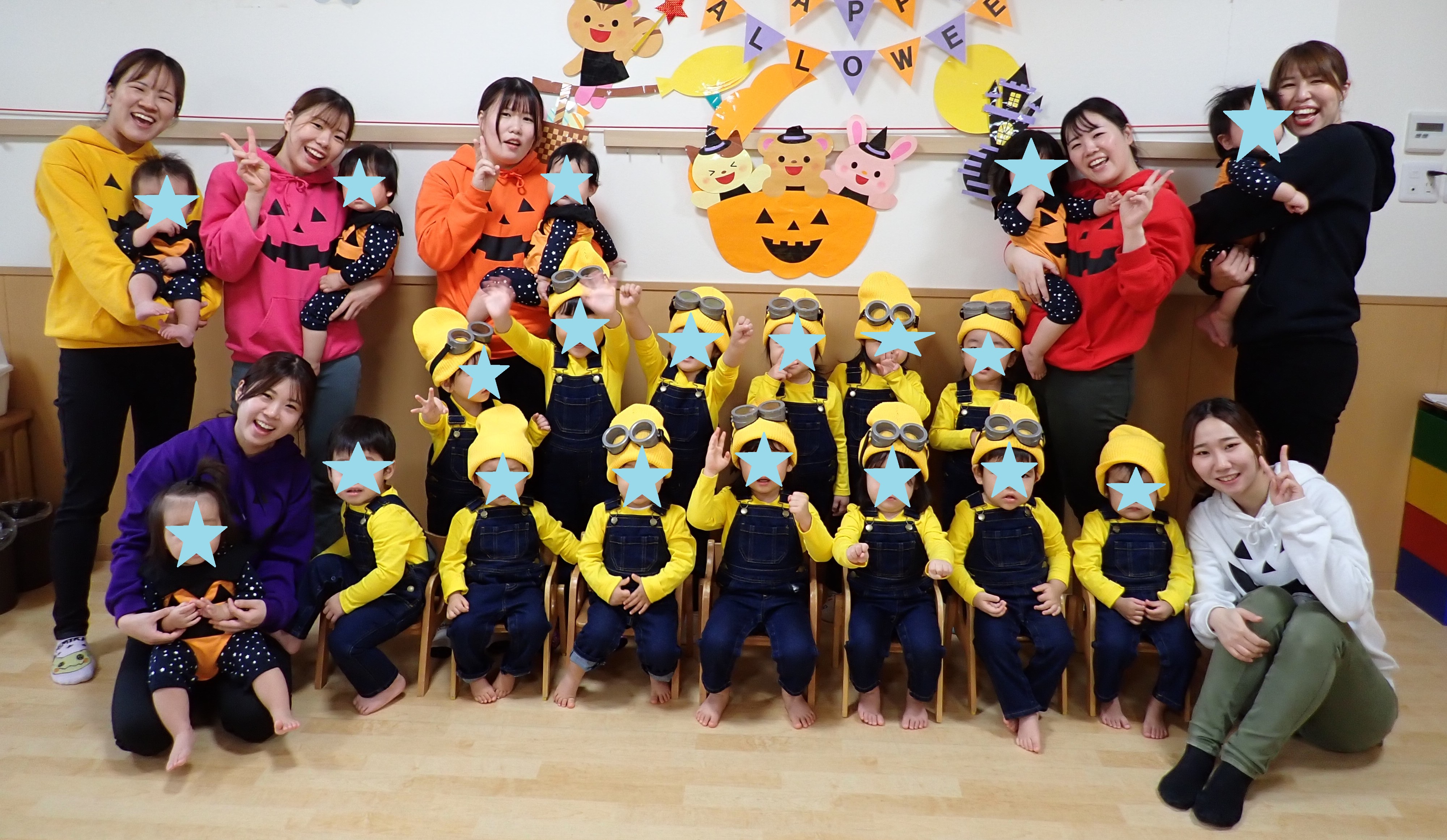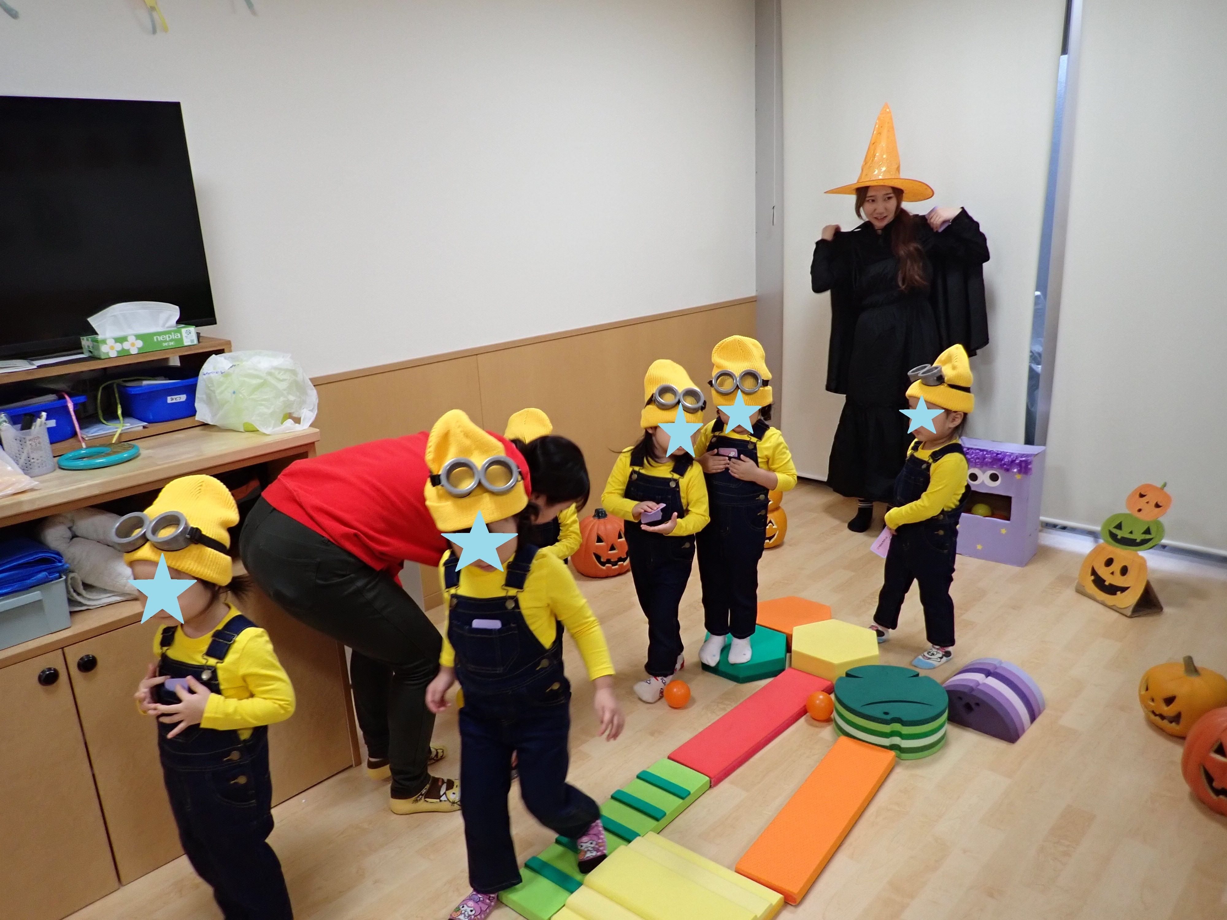 白組さんはカボチャに、緑組さんと桃組さんはミニオンに変身しましたよ☆