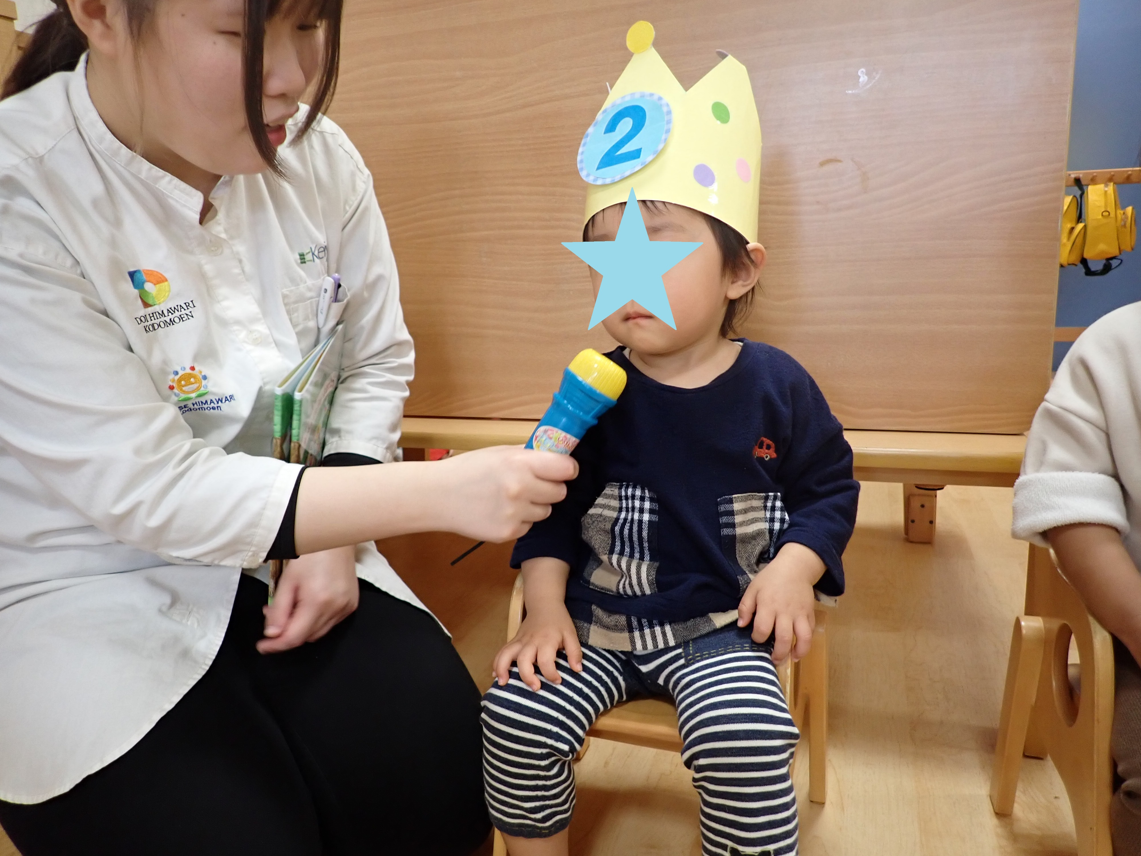12月生まれのお友だちが緊張気味に前に出てきてくれましたが、次第に緊張も解けてきて自然な表情に♪