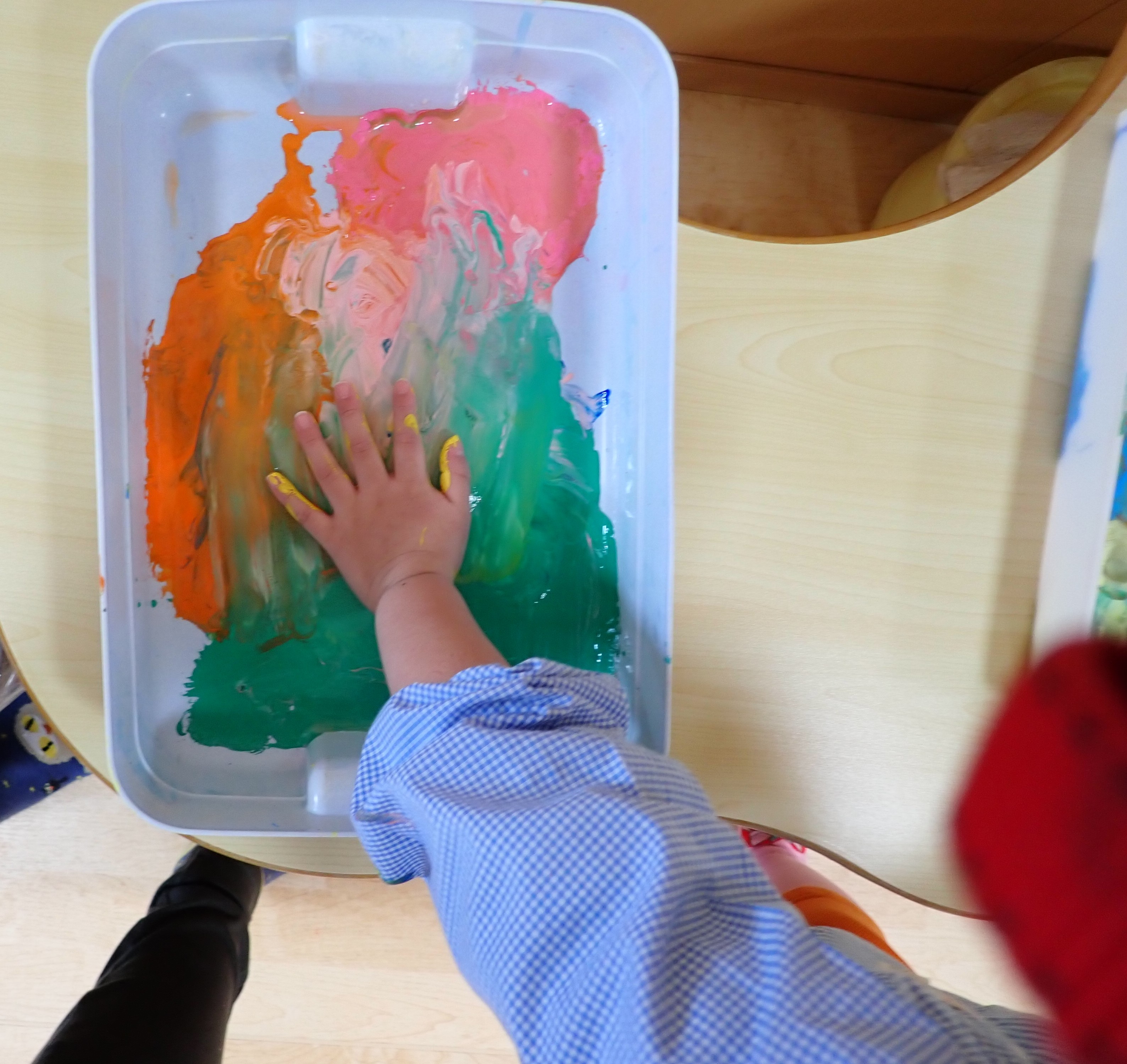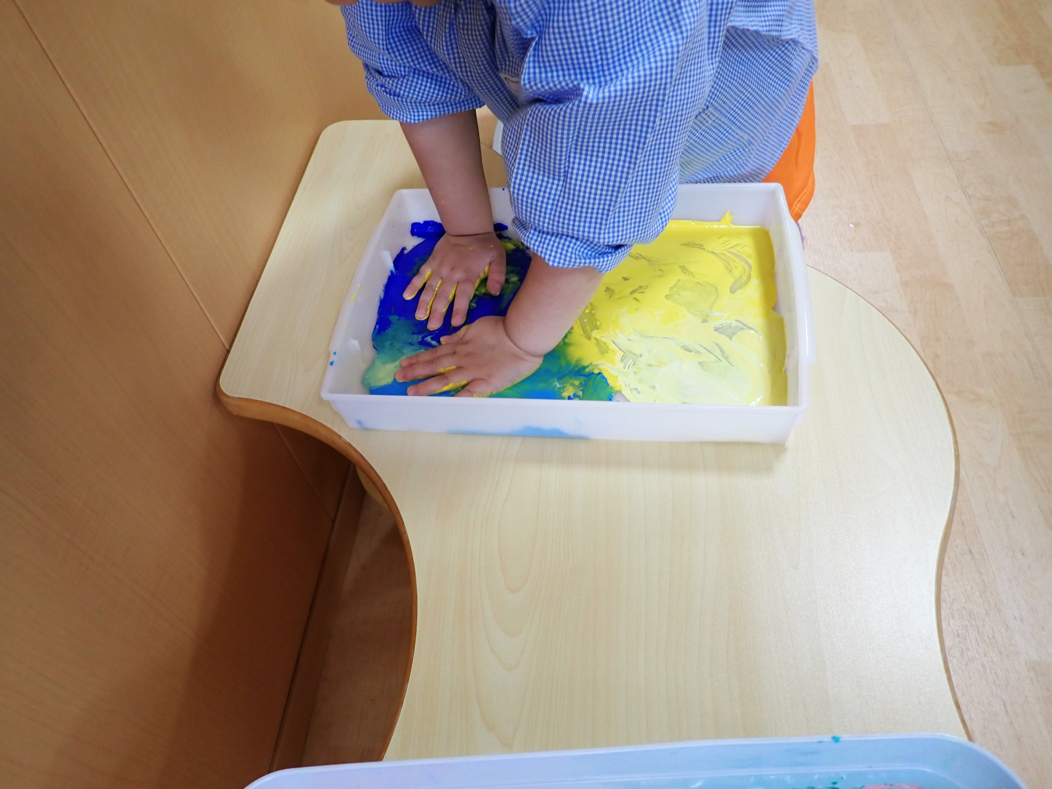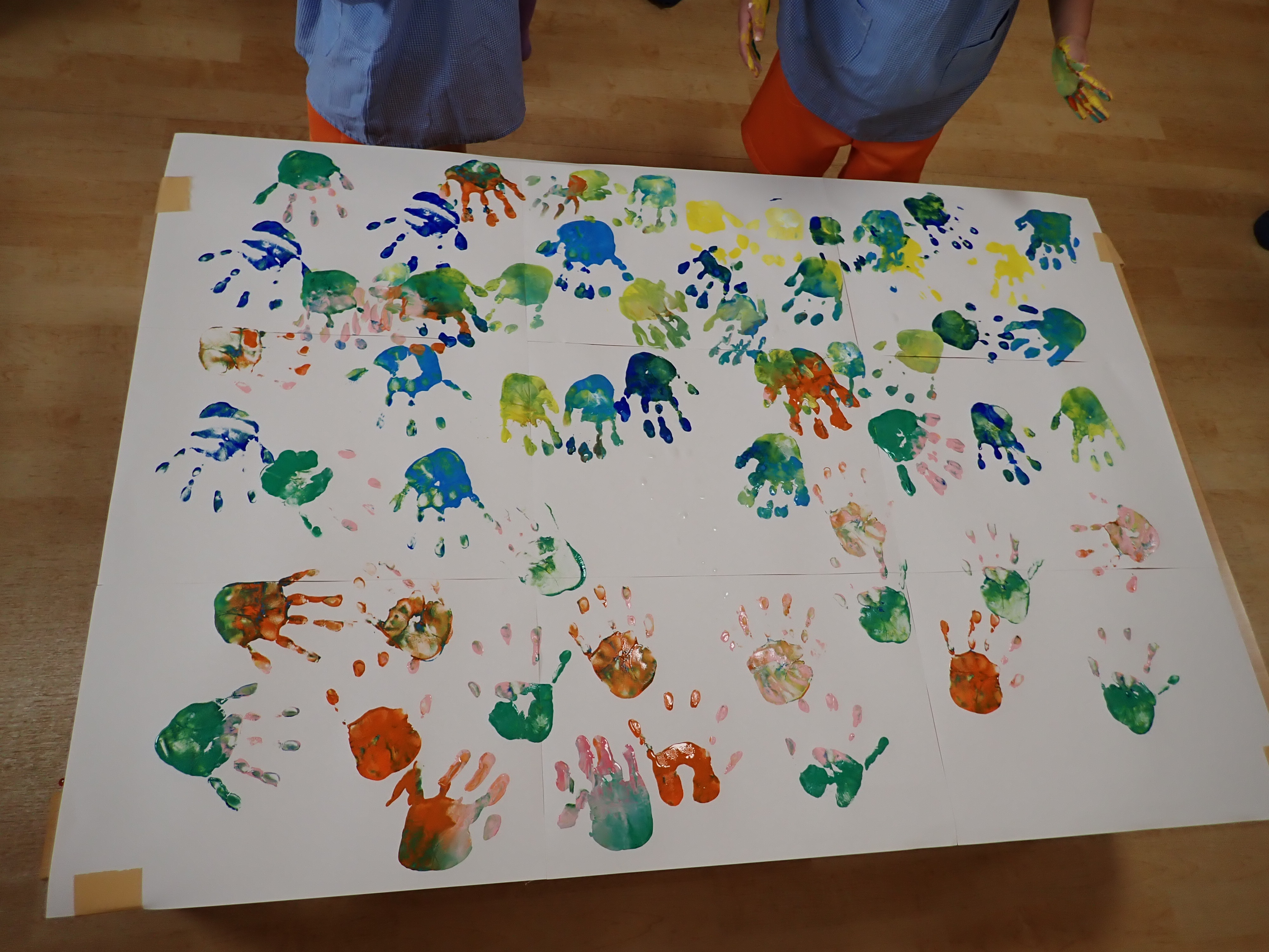 今日は桃組さんが手形アートをして遊んでいましたよ♪