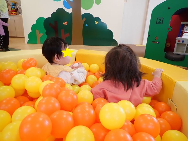 ボールプールに入り、お友だちの様子を見ています♪各々好きな遊びをしてとても満足そうでした☆