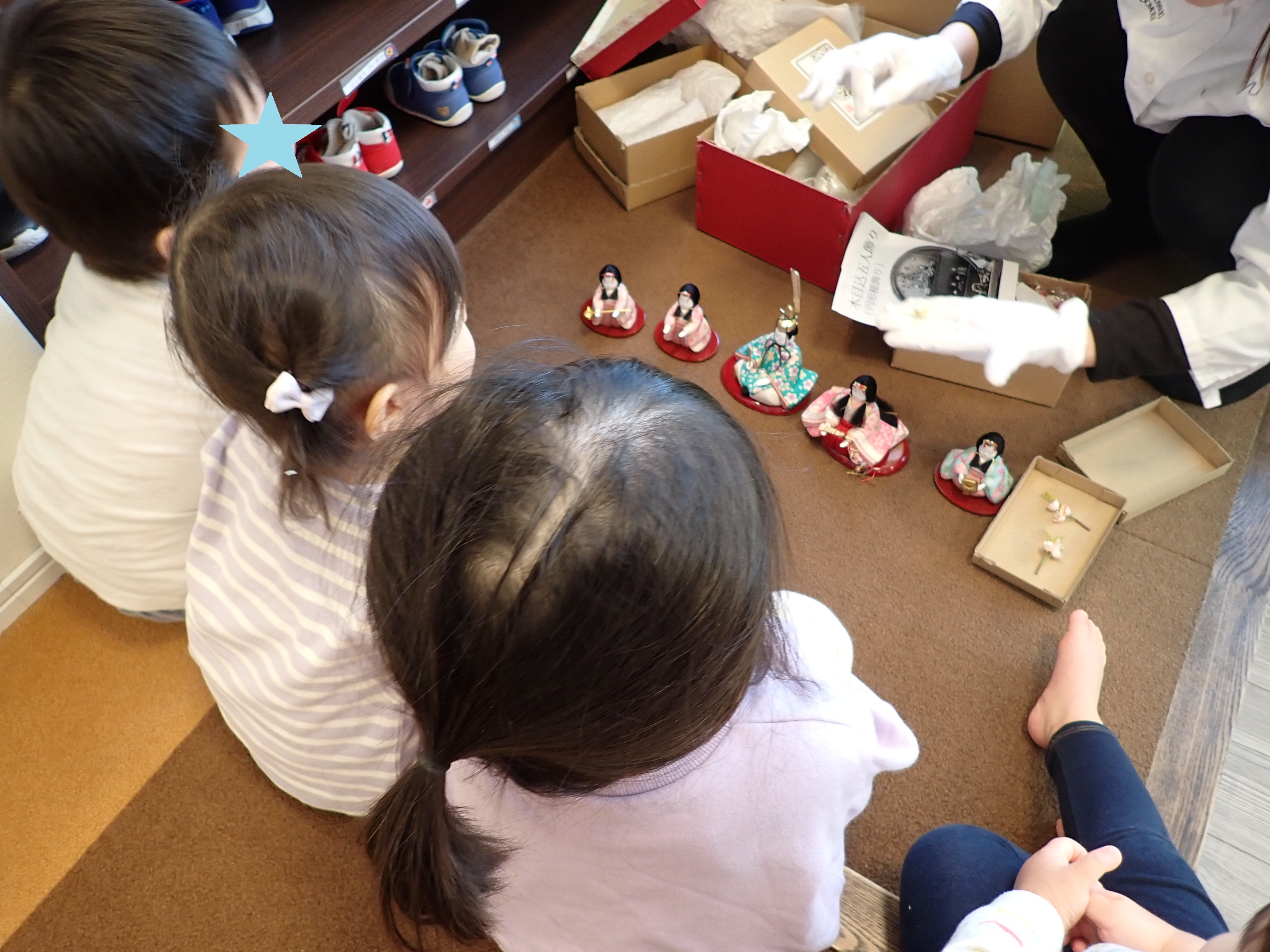 可愛らしいお雛さんを見て「かわいい~!」と声を上げる子どもたち☆