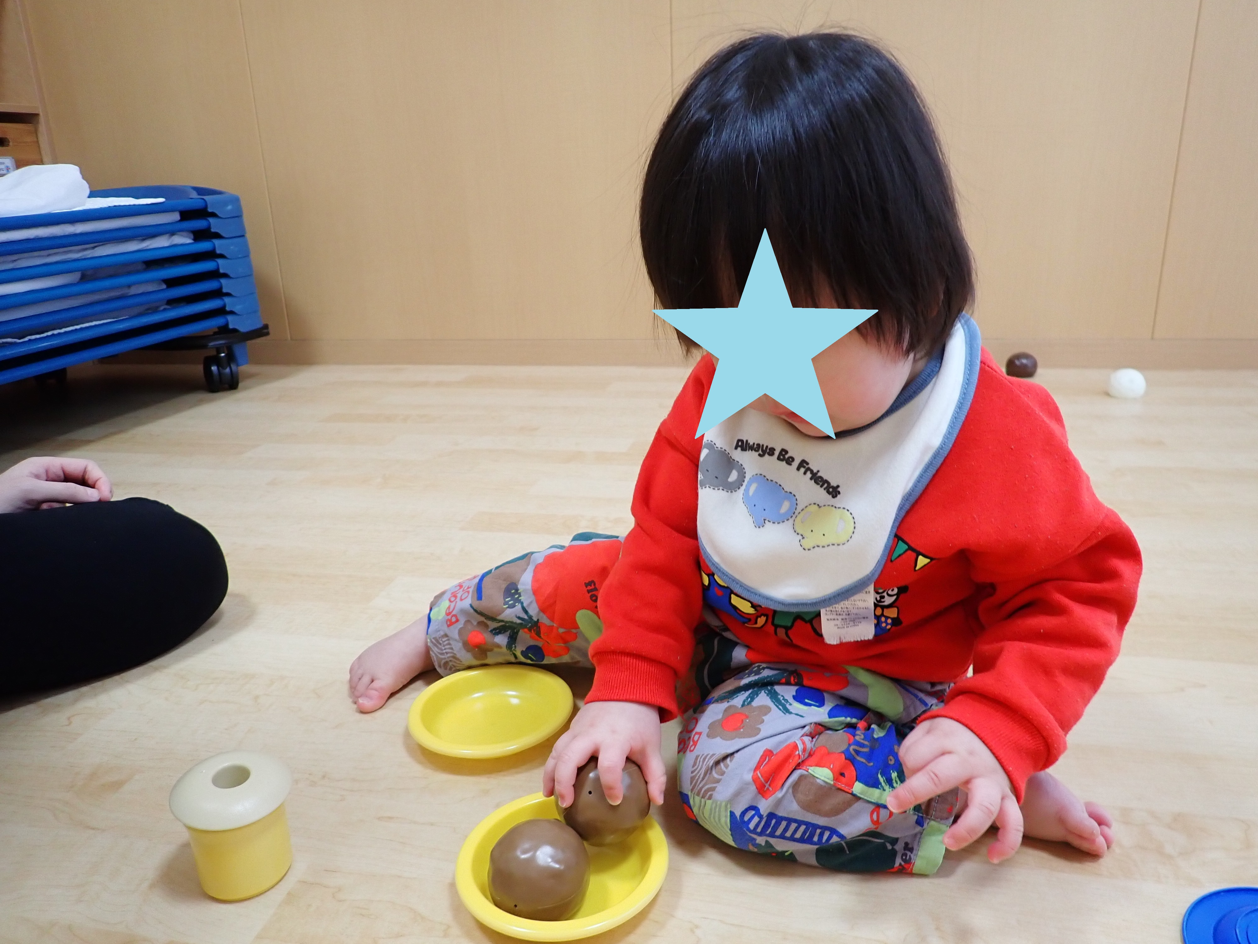 今日は0歳児白組さんがみんなで集まってパーティーしていましたよ☆