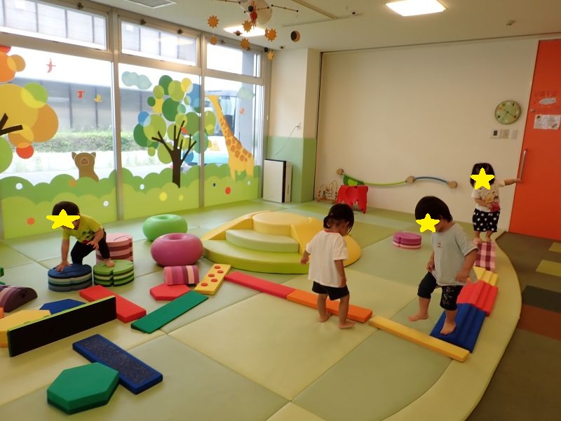 こんにちは!大阪府守口市にある小規模保育園Fineひまわり保育園です。今日は、012歳児合同で支援センターで遊びました。