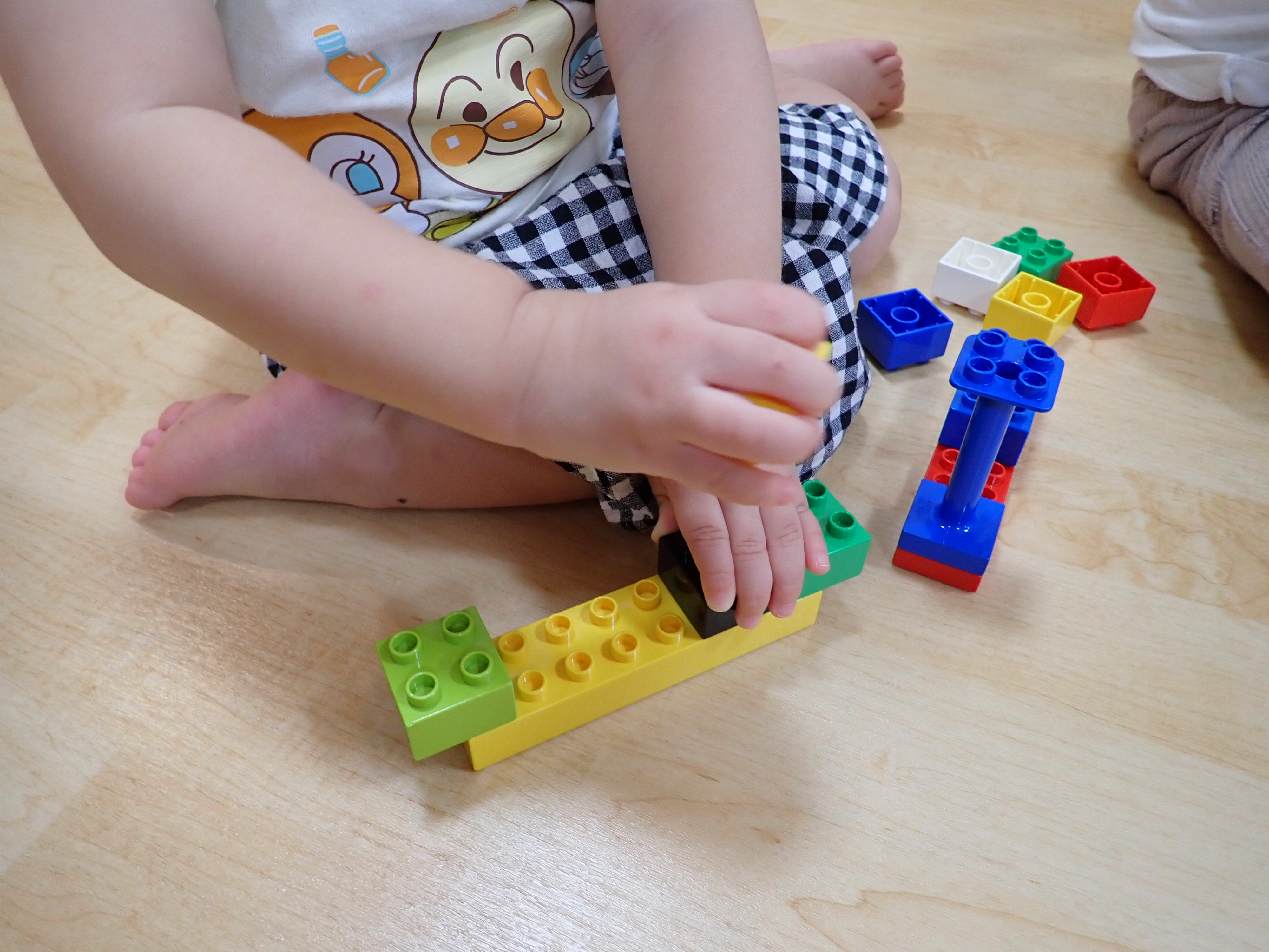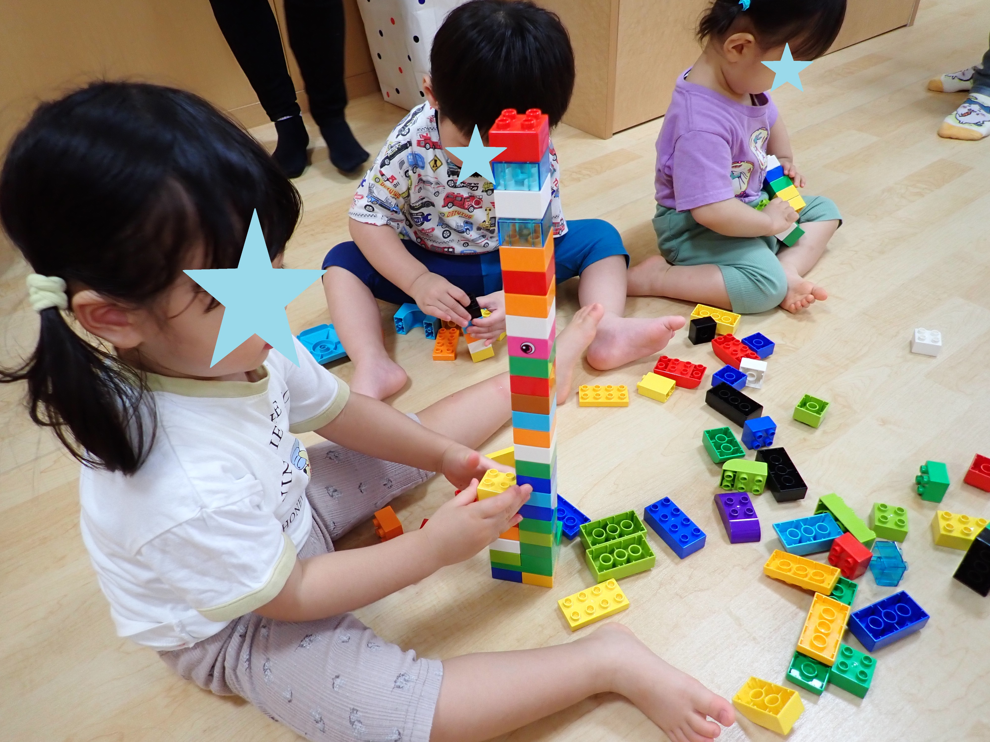 今日は1歳児緑組さんがレゴブロックで遊んでいましたよ☆