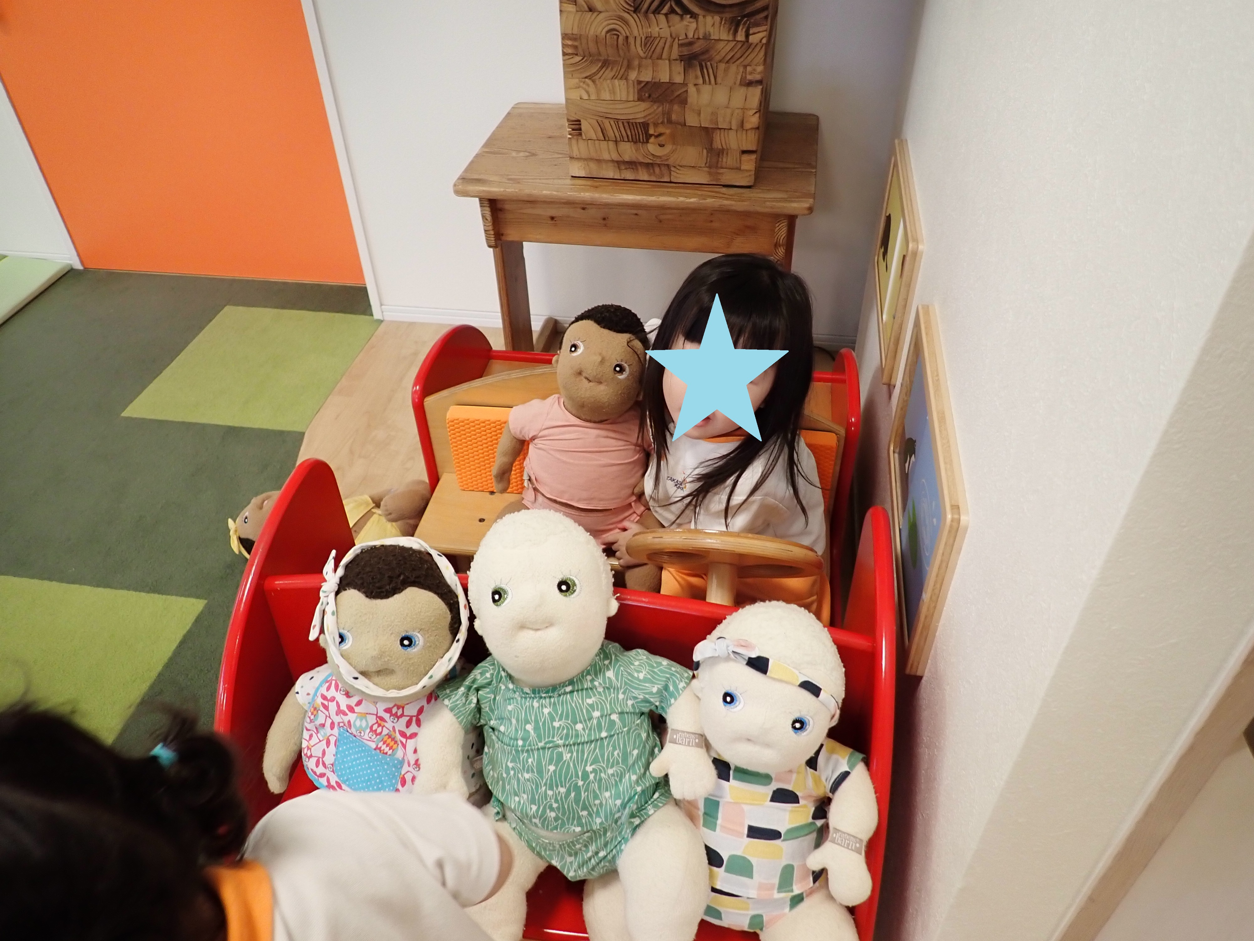 隣では、人形の赤ちゃんを寝かしつけている姿も見られました。