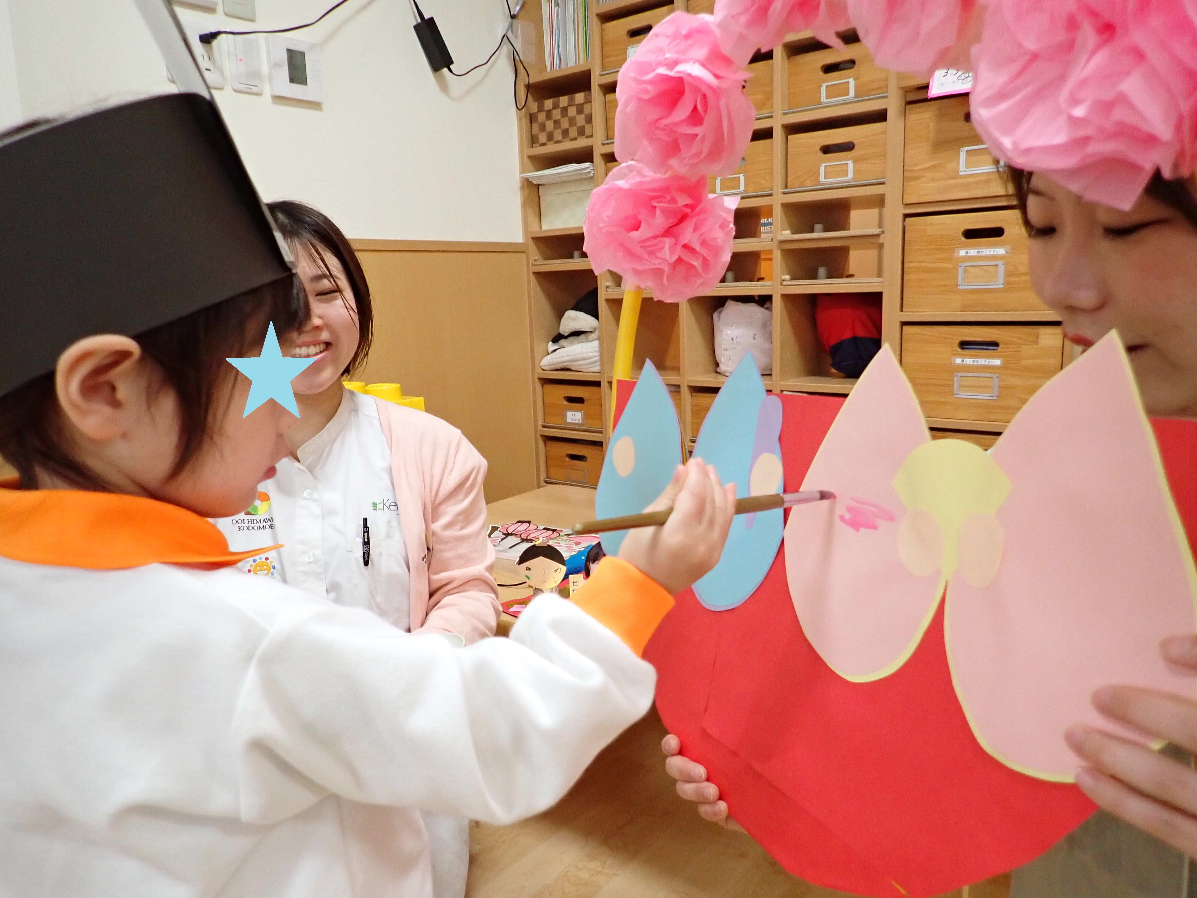 しかし、お内裏様とお雛様の着物の模様を描いてもらうお手伝いをしっかりとしてくれましたよ(*´▽`*)